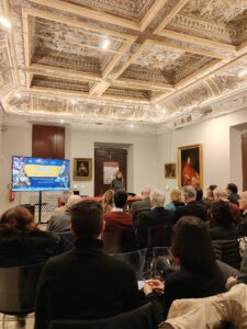 Anna Maria Ambrosini Massari presenta i due vincitori delle borse di studio emanate dal Comitato Nazionale: Elisa Martini e Lorenzo Grimaldi.