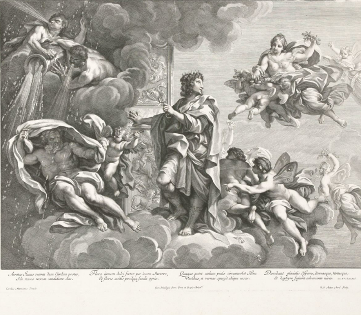 Artista prediletto di ben sei papi – in particolare Urbano VIII Barberini, Alessandro VII Chigi, Clemente X Altieri, sino a Clemente XI Albani – , Principe a vita dell’Accademia di San Luca dal 1700 sino alla morte, Maratti fornì un’impressionante serie di pale d’altare in varie chiese a Roma e in tutt’Italia – Ancona, Siena, Palermo, Napoli e Torino –, affreschi nei palazzi romani Altieri e del Quirinale d’impostazione innovativa, che coniugavano il linguaggio classicista al più aggiornato gusto barocco. Significative furono le richieste a lui avanzate da regnanti di tutt’Europa: il re di Francia gli commissionò il celebre Apollo e Dafne oggi a Bruxelles, Musées des Beaux-Arts, e l’imperatrice Eleonora d’Asburgo il Transito di San Giuseppe oggi a Vienna, Kunsthistorischen Museum.