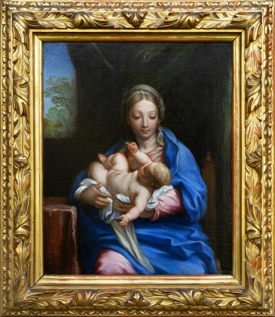 Nato a Camerano (Ancona) nel 1625 ed approdato a Roma all’età di undici anni, ma munito di un talento precoce, Maratti fu accolto ben presto nella bottega di Andrea Sacchi, divenendone l’allievo prediletto ed erede della prestigiosa tradizione classicista dei bolognesi Carracci, che egli aggiornò costantemente con prestiti da Guido Reni, Lanfranco e Bernini. La sua lunga e fortunata carriera ebbe inizio dallo squisito Presepe neo-correggesco, svelato nel 1650 nella chiesa di san Giuseppe dei Falegnami a Roma, seguito dalle tre cappelle in Sant’Isidoro, tra cui quella De Sylva con la celebre Immacolata divenuta un’immagine iconica della Controriforma trionfante, e da una sempre più ampia serie di prestigiose commissioni. I numerosi quadri di soggetto mariano gli meritarono il soprannome con cui era noto in gioventù di “Carluccio delle Madonne”.